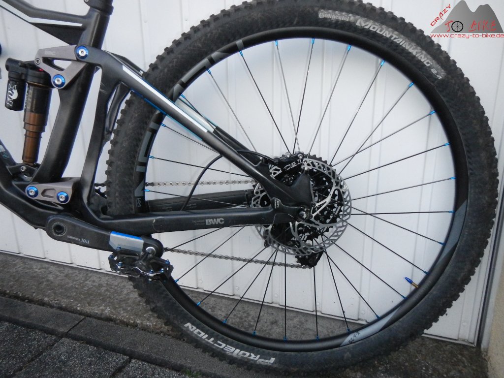 Durch die sehr leichen Trace Trail Felgen, und natürlich durch die Tune-Naben, konnte ich die Masse (die Meisten sagen fälschlicherweise Gewicht) des Trailfox auf 12,02 kg reduzieren - und das bei den mit Knapp 700 g pro Stück nicht gerade leichten, aber voll All Mountain / Enduro tauglichen Onza Ibex FR Reifen.