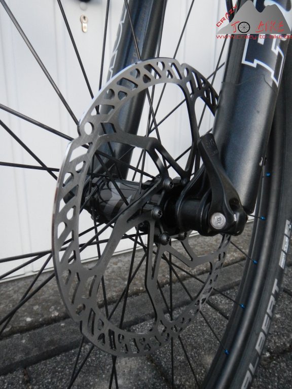 Unglaublich aber wahr - die aktuellen Avid Elixir Bremsen sind extrem hitzeanfällig. Schon kleine Abfahrten führen dazu, dass die Bremse zu stinken beginnt - kein vertrauenerweckender Zustand. Ich habe daher die original Avid Scheiben (180/180 mm) gegen Shimano XT Icetec Scheiben (203/180 mm) und die original Avid-Beläge gegen Trickstuff getauscht. Nun macht die Bremsanlage wieder das, was sie soll: Klaglos bremsen.