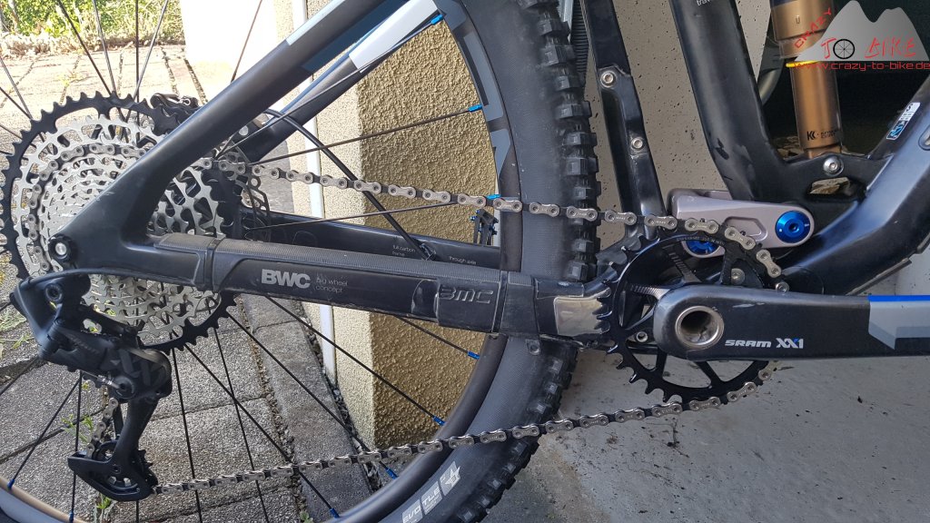 Nachdem der originale, sehr weiche und eher minimalistische Kettenstrebenschutz nach 2,5 Jahren im Trail- bis leichtem Enduroeinsatz löchrig geworden war, habe ich diesen durch den VHS 3.0 ersetzt.