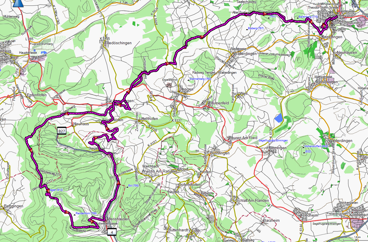 • Von Engen geht es zunächst auf den so genannten "alten Postweg". Hier fuhr früher die Postkutsche Richtung Schwarzwald. Daran erinnert auch die "Alte Postweghütte" oberhalb Watterdingen.