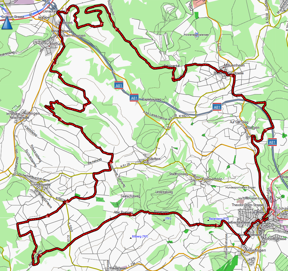 M-H-026 Engen - Bargen - Mauenheim - Kirchen-Hausen - Aulfingen - Leipferdingen - Postweg - Engen (viel Teer)