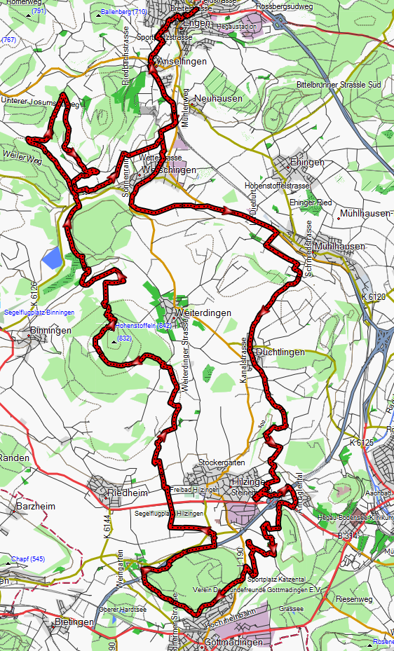 M-H-035 Engen - Welschingen - Mägdeberg - Duchtlingen - Hilzingen - HBM-Strecke (rückwärts) - Gottmadingen - Hohenstoffeln - Binningen - Hohenhewen - Welschingen - Engen