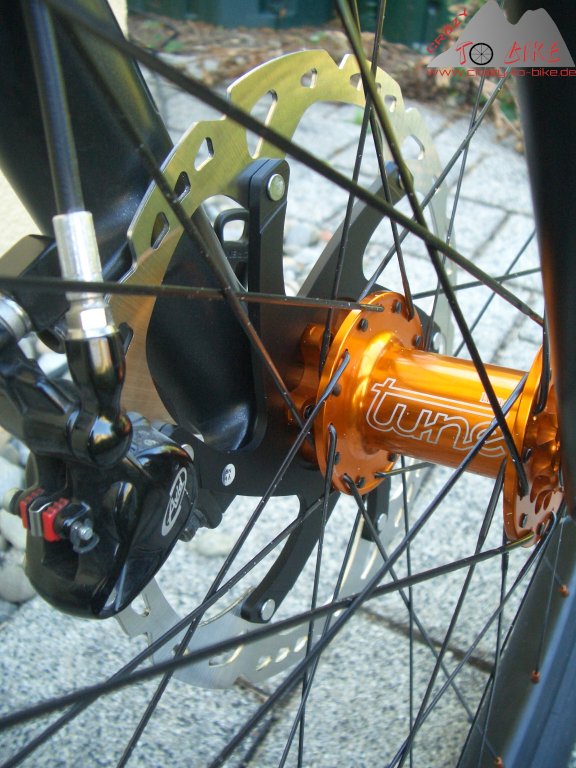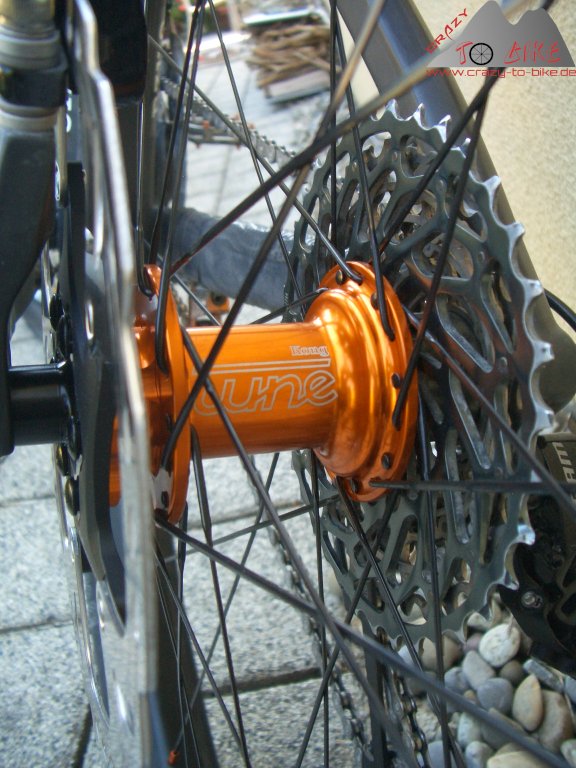 Nachdem ich mir durch einen Durchschlag die Easton Haven Hinterradfelge zerstört hatte, und mir ohnehin schon lange ein Tune-Laufradsatz im Hinterkopf herumspukte, war es dieses Jahr so weit. Passend zu den orangen Details des Trailfox TF01 habe ich mir einen Laufradsatz mit orangen Tune King / Kong Naben, Sapim CX Ray Speichen und Ryde Trace Trail Felgen (25mm Maulweite) gegönnt - natürlich mit orangen Speichennippeln.