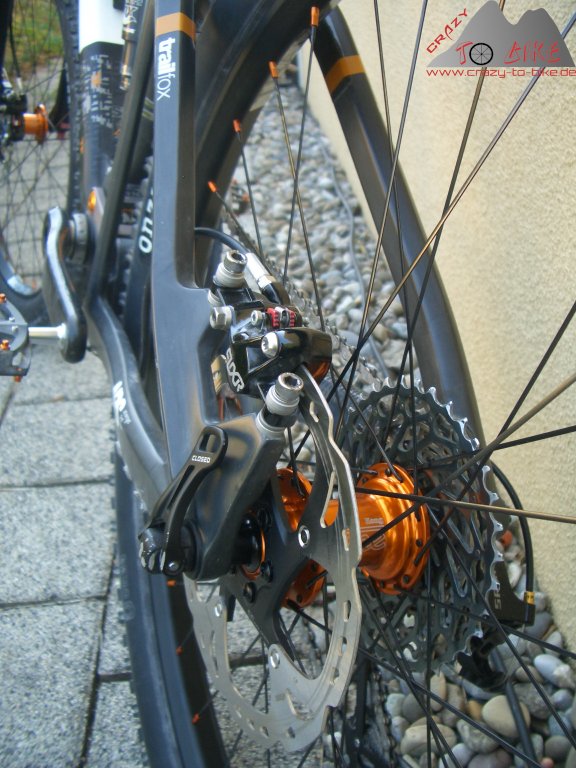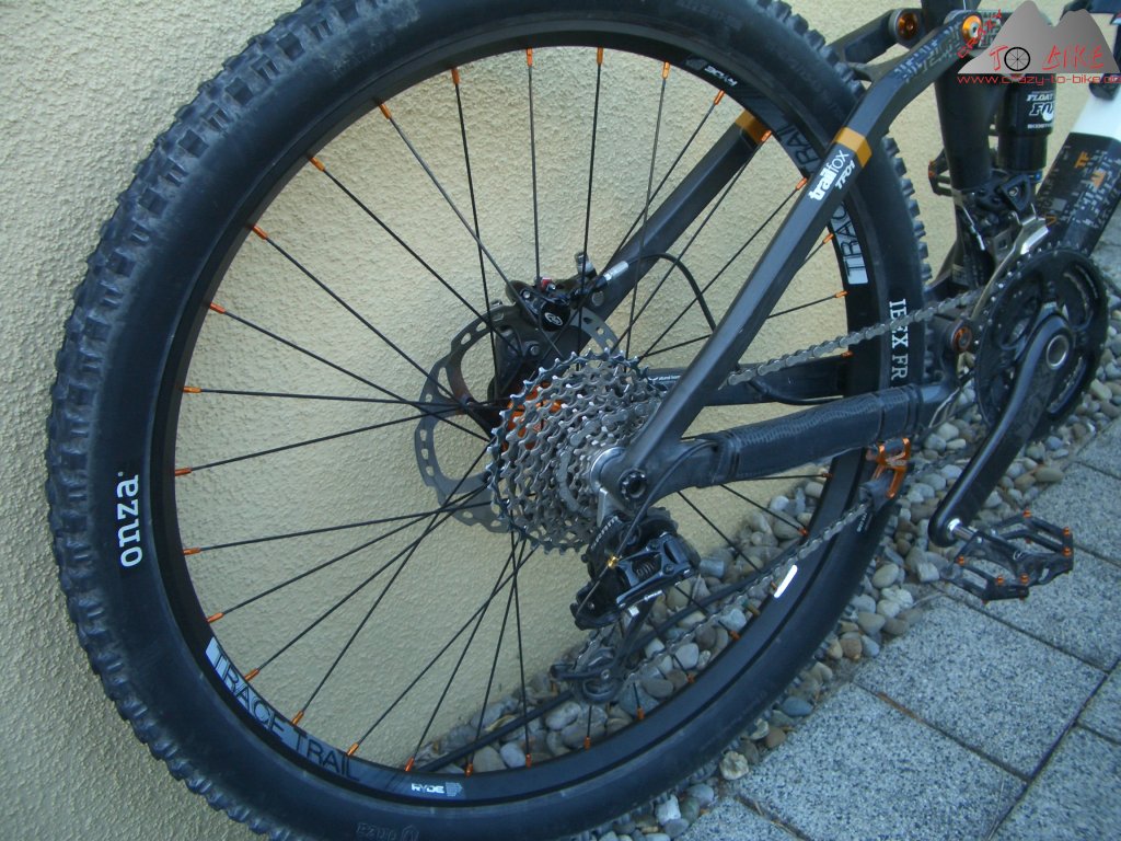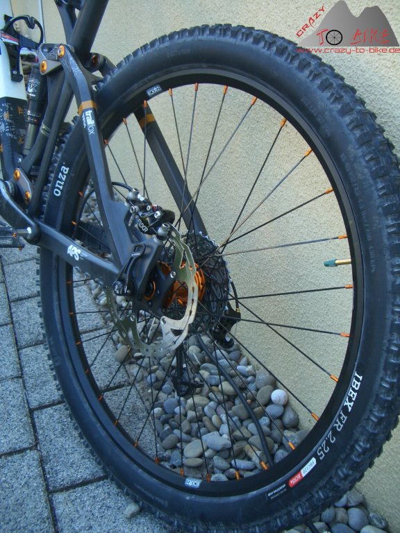 Durch die sehr leichen Trace Trail Felgen, und natürlich durch die Tune-Naben, konnte ich die Masse (die Meisten sagen fälschlicherweise Gewicht) des Trailfox auf 12,02 kg reduzieren - und das bei den mit Knapp 700 g pro Stück nicht gerade leichten, aber voll All Mountain / Enduro tauglichen Onza Ibex FR Reifen.
